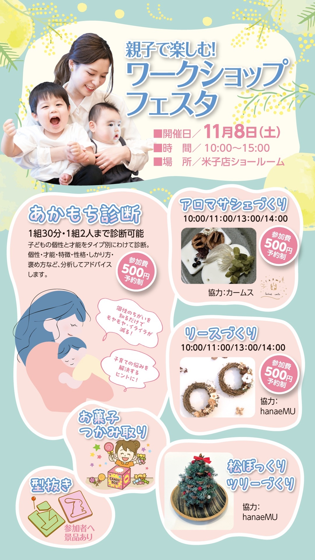 🚨あかもち診断、アロマサシェ作り、リース作りは