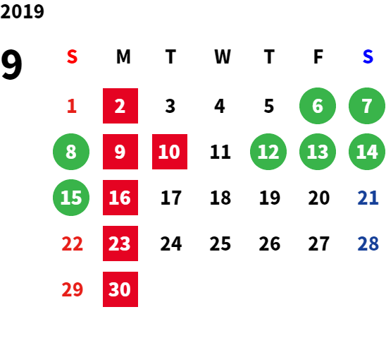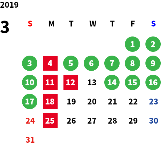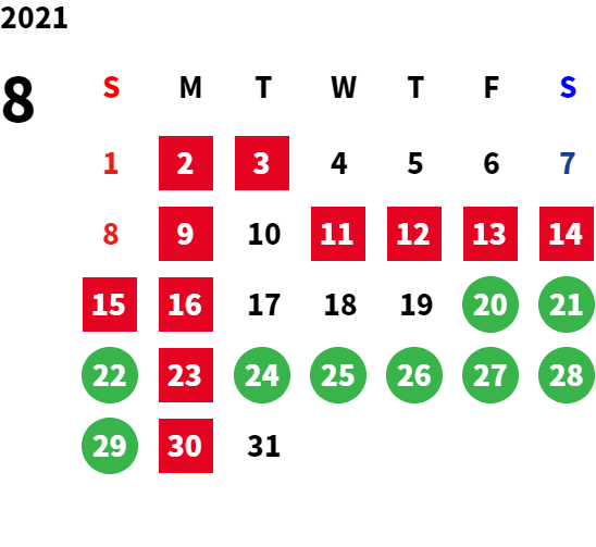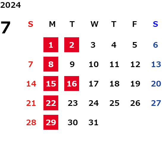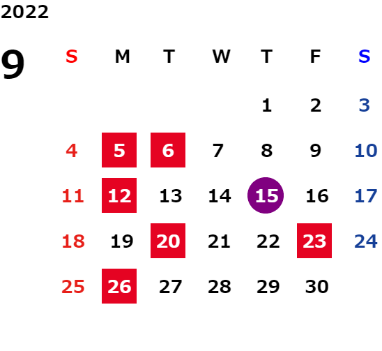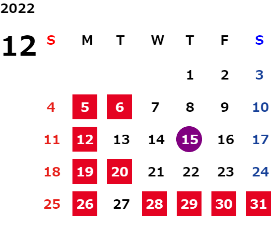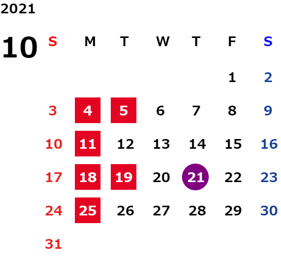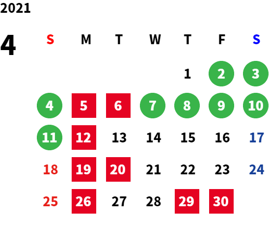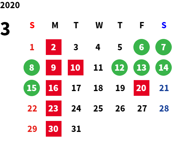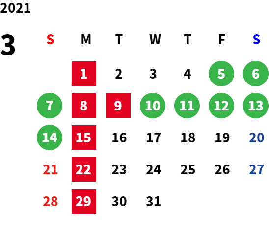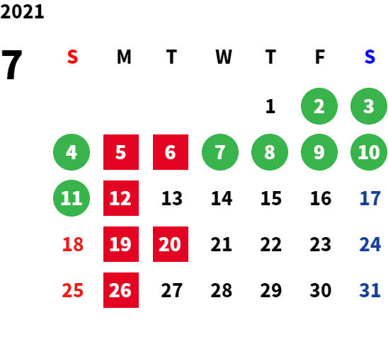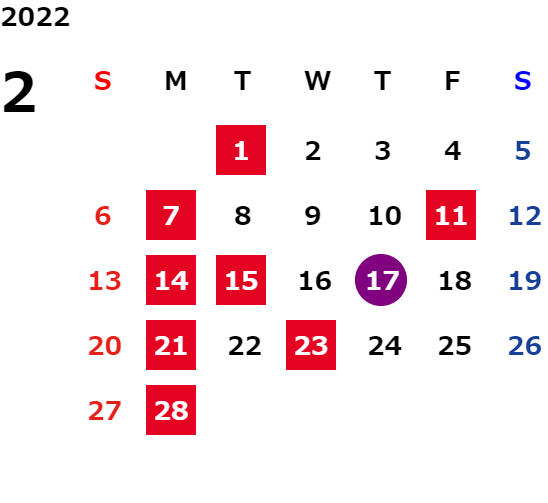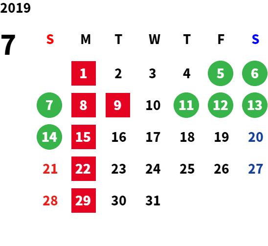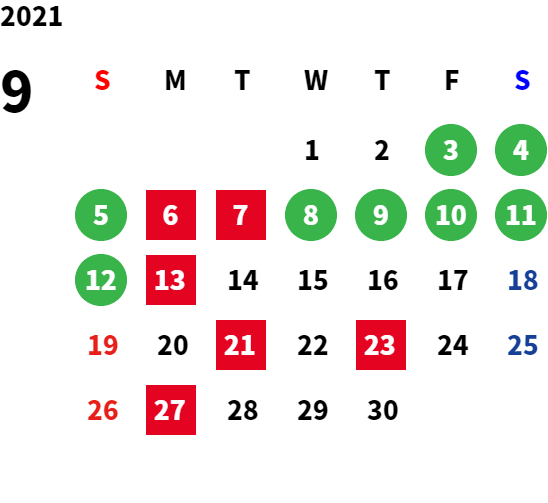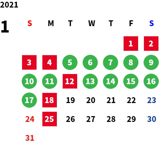 営業日カレンダー